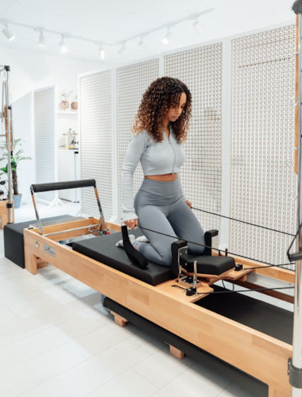 Reformer Pilates is a full-body workout that uses a specialized machine called a reformer — a moving carriage with springs, straps, and pulleys that add resistance to every movement. This dynamic setup helps you strengthen, tone, and lengthen your muscles while improving flexibility, posture, and balance.